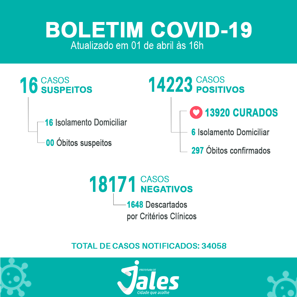 Jales registra uma morte e 05 novos casos positivos de Covid-19