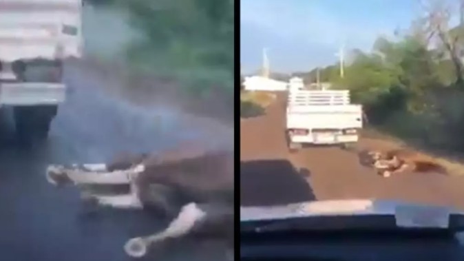 Cavalo é amarrado com corda em caminhonete e arrastado por rodovia