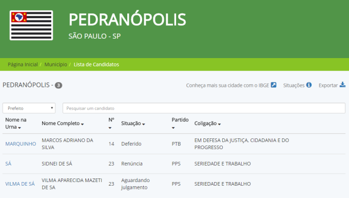 São: Sidnei de Sá e o vice Zé do Banco, em Pedranópolis, e Torrente em Meridiano