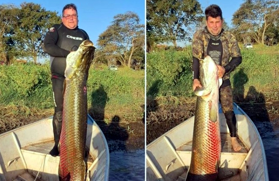 Mais um gigante é fisgado no Rio Grande: pirarucu de 133 quilos