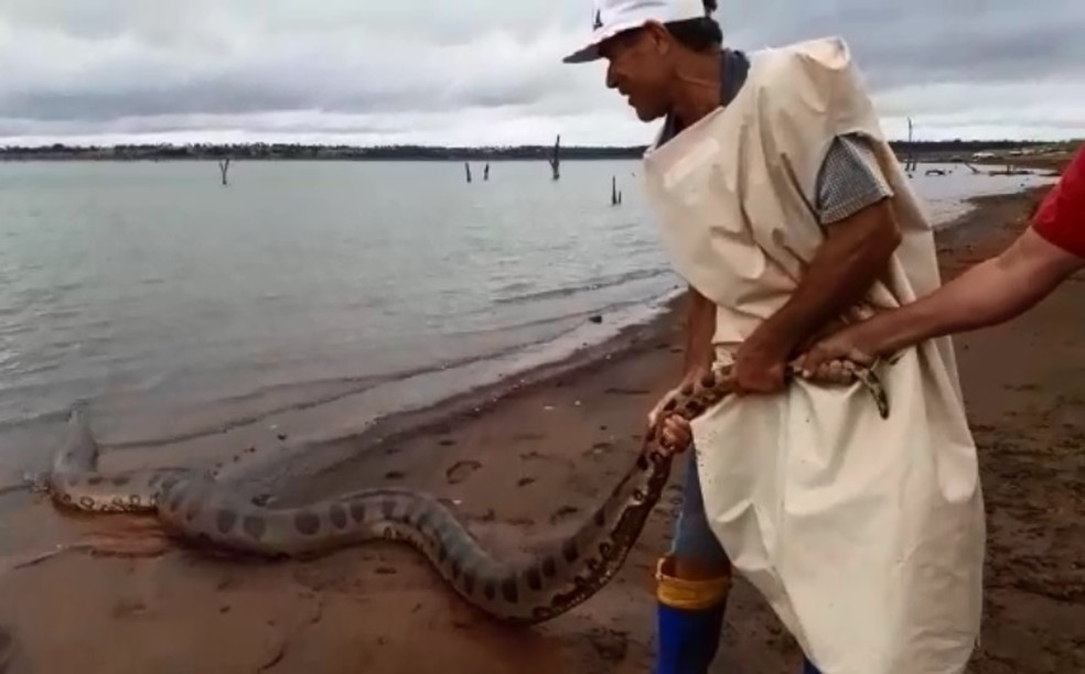 Cobra foi vista por eles saindo do rio durante a pescaria no rio Grande