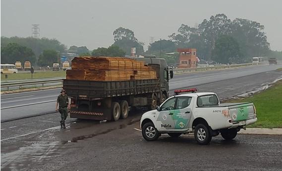 Transporte irregular de madeira é flagrado pela Polícia Ambiental
