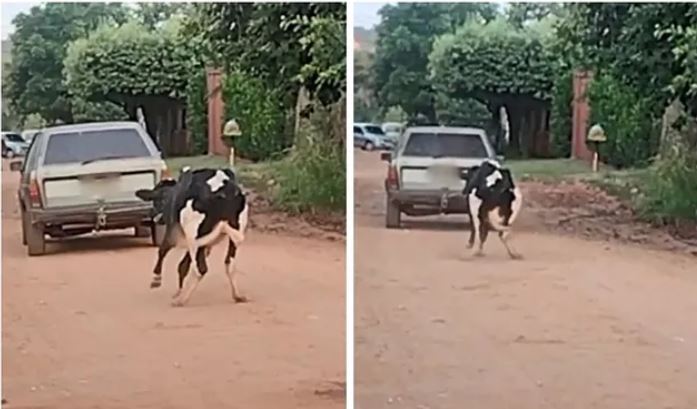 Idoso é multado em R$ 3 mil após puxar vaca amarrada em carro