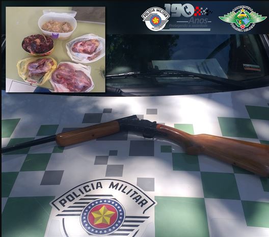 Uma espingarda calibre 28 e carne de diversos animais foram apreendidas