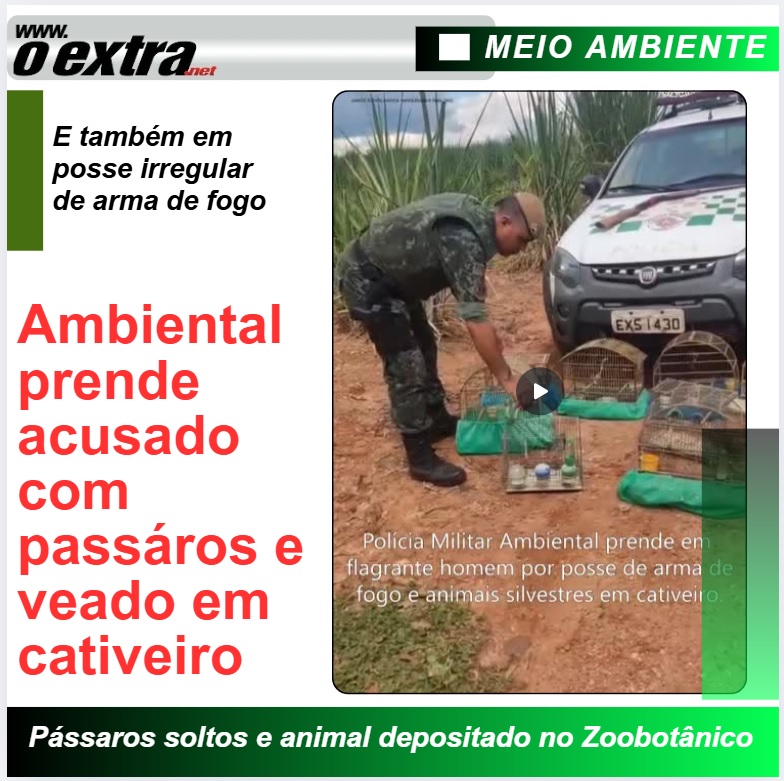 Polícia Ambiental prende acusado com pássaros e veado em cativeiro
