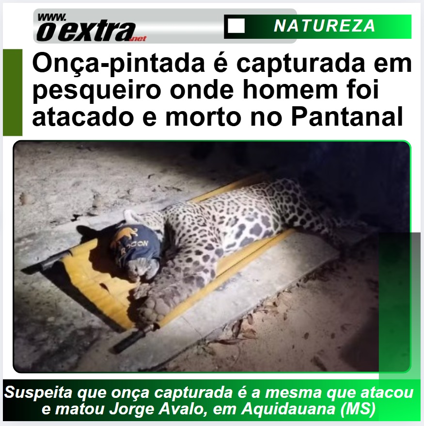 Onça-pintada é capturada em pesqueiro onde homem foi atacado e morto
