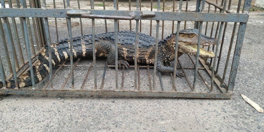 Polícia Ambiental captura jacaré de 1,5 metro de comprimento
