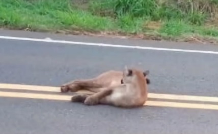 Onça é flagrada deitada em rodovia, próximo a Brasitânia