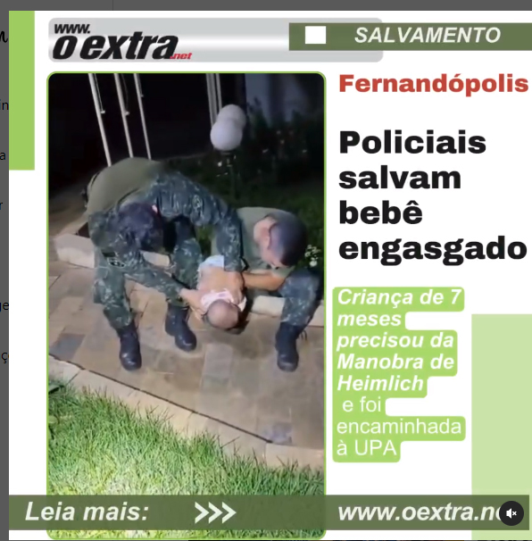 Policiais salvam bebê engasgado em Fernandópolis. Veja o vídeo