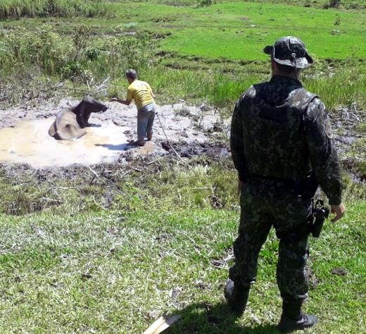 Ambiental flagra búfalos atolados em brejo na região; dois morreram