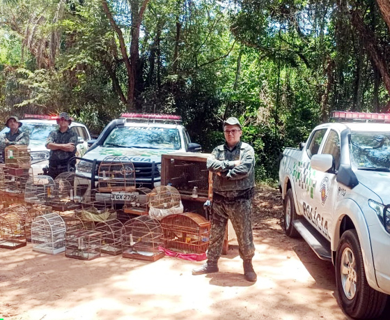 Polícia apreende 124 Canários Terra que estavam presos em gaiolas