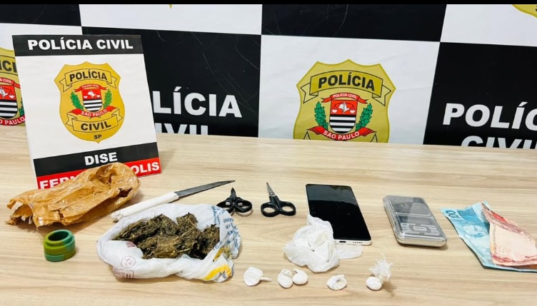 Flagrado com cocaína, maconha e haxixe, além de apetrechos relacionados