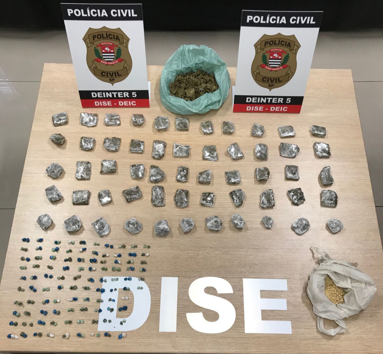 Também foram apreendidas porções de maconha embaladas e pedras de crack