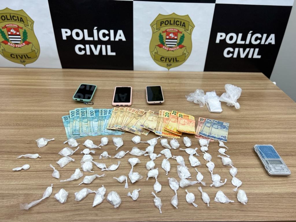 Foram apreendidas aproximadamente 200 gramas de cocaína distribuídos 65 porções