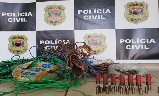 Foram encontrados 209,45 kg de fios de cobre e 237 munições