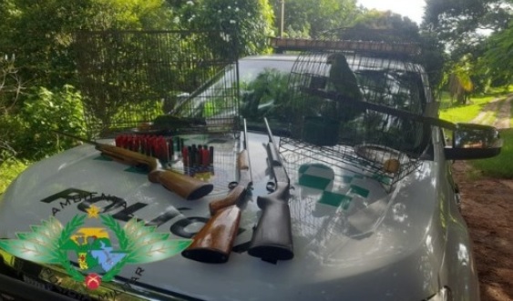 Polícia Ambiental apreende aves e armas em propriedade rural