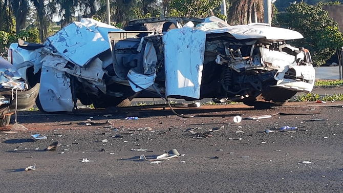 Foi uma colisão traseira envolvendo uma caminhonete e um carro