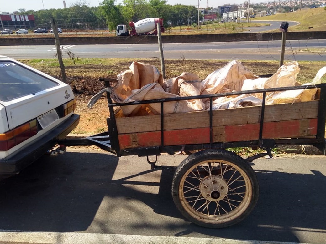 O objeto foi encontrado com a porta destruída próximo a um terreno baldio