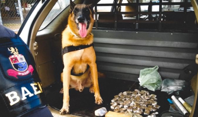 Cão policial encontra droga em mata e dupla é presa por tráfico