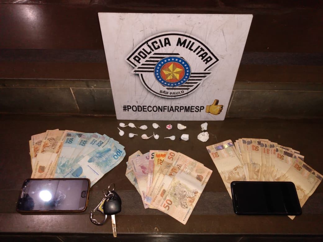 Além da droga foram apreendidos R$ 2383,00 reais, dois celulares e veículo