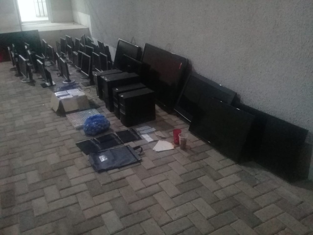 No local havia computadores, cartelas e uma máquina usada para fazer o sorteio
