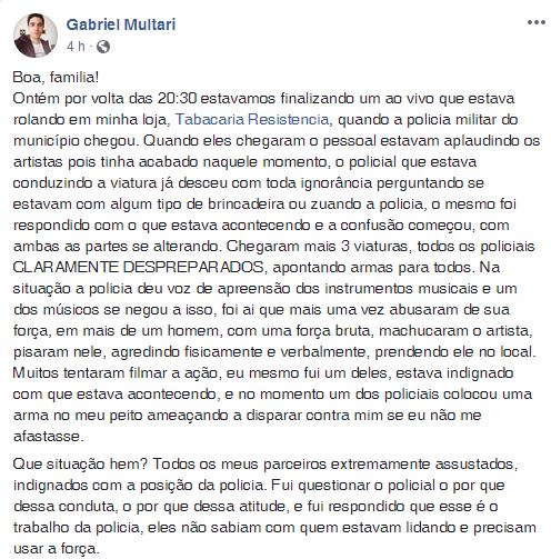 Comerciante acusa PM de 'despreparo' em abordagem realizada durante sh