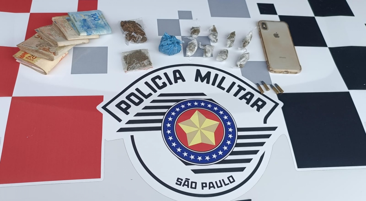 Na abordagem, os policiais encontraram porções de maconha e quantia em dinheiro