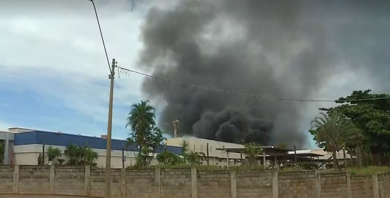 Na região, incêndio de grandes proporções atinge galpão de fábrica