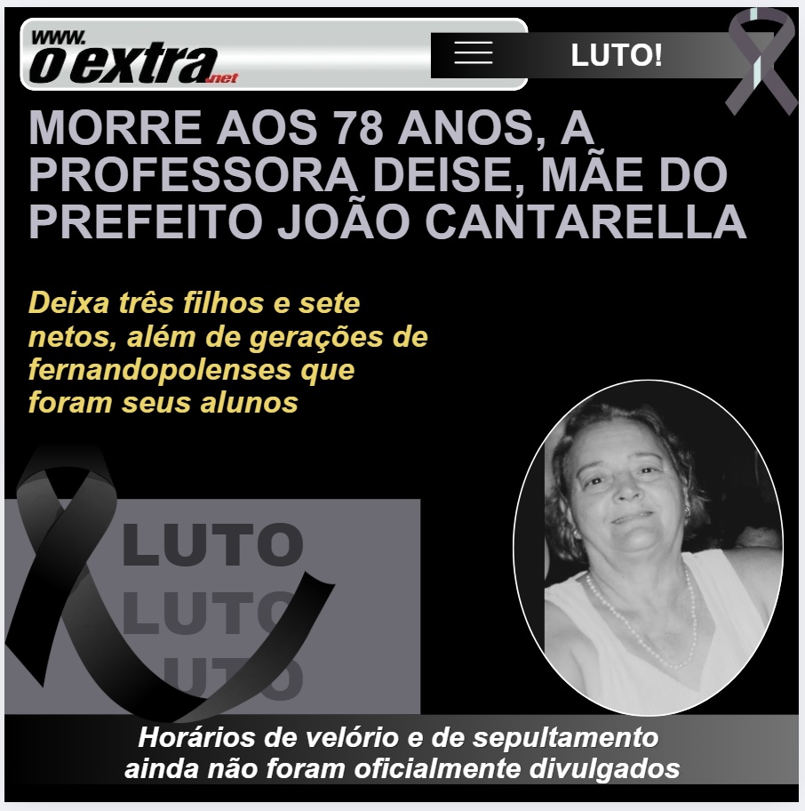 Morre aos 78 anos, a Professora Deise, mãe do prefeito João Cantarella