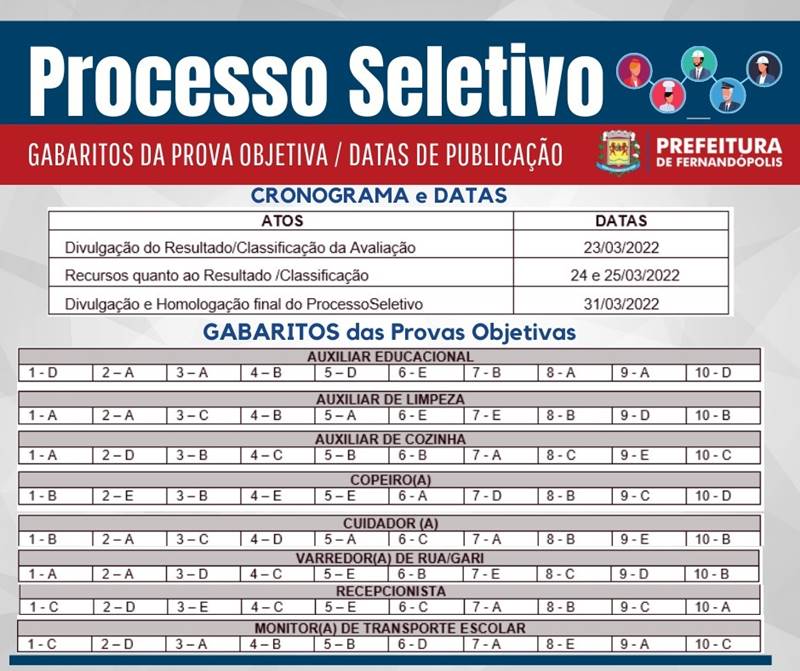 Gabarito de Processo Seletivo para contratação temporária é divulgado