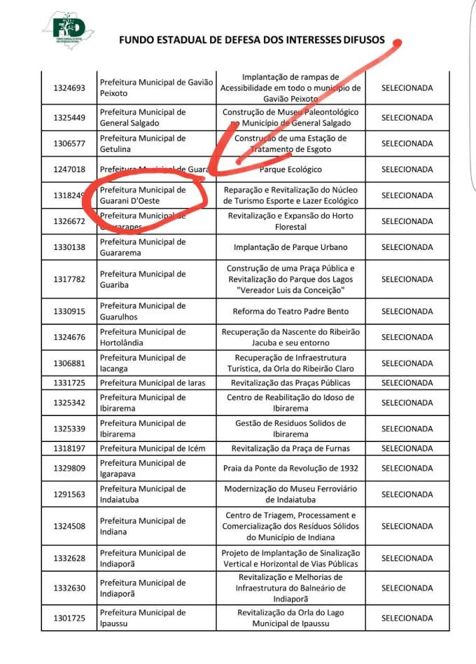 Guarani d’Oeste deve apresentar ao Fundo outros documentos pertinentes ao Programa