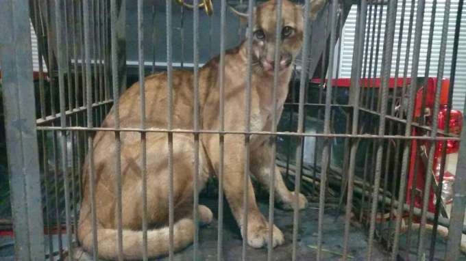 Corpo de Bombeiros resgata onça parda em cima de árvore