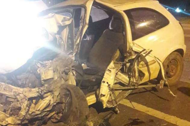 Carro bateu de frente com um caminhão