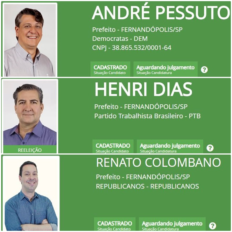 Site do TSE confirma candidaturas de Pessuto, Henri e Colombano