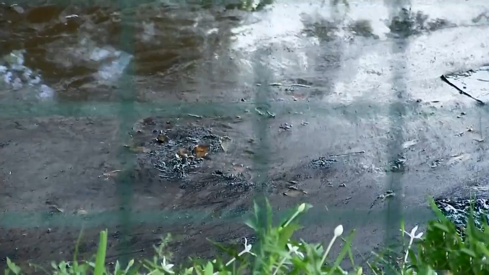 A mancha é resultado do vazamento de impermeabilizante de asfalto