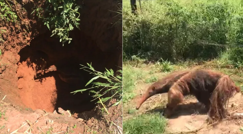 Polícia Ambiental resgata tamanduá-bandeira de buraco de quatro metros
