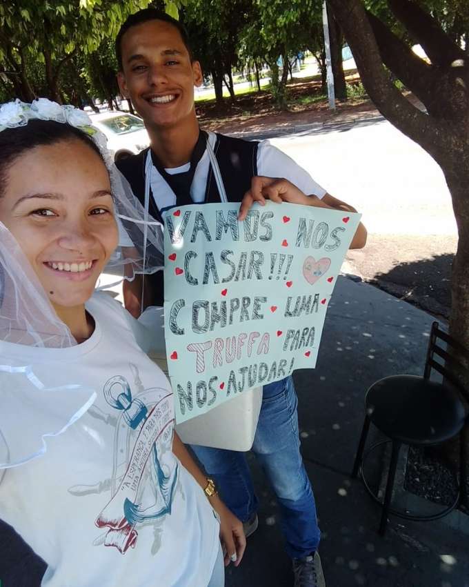 Casal vende trufas em semáforo para bancar festa de casamento em Rio