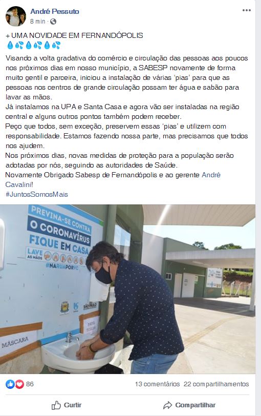 Anúncio foi feito pelo prefeito André Pessuto em sua página no Facebook