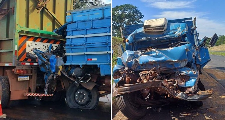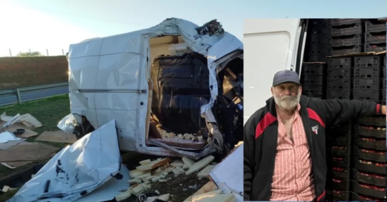 Barba Morangueiro ficou preso em sua van entre dois caminhões