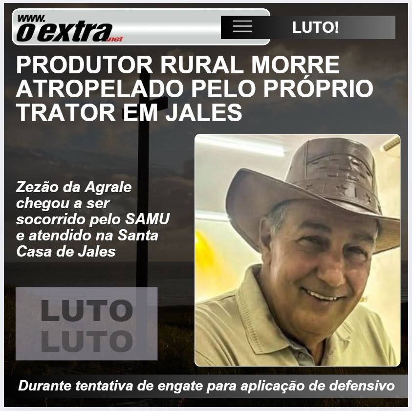 Produtor rural morre atropelado pelo próprio trator em Jales