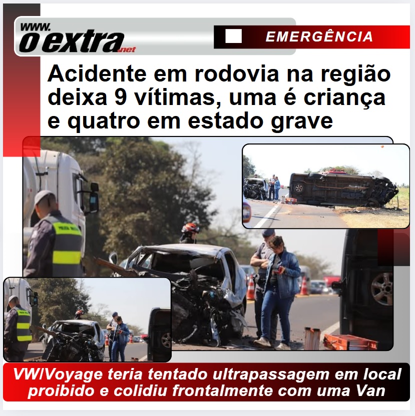 Acidente em rodovia na região deixa 9 vítimas, 4 em estado grave