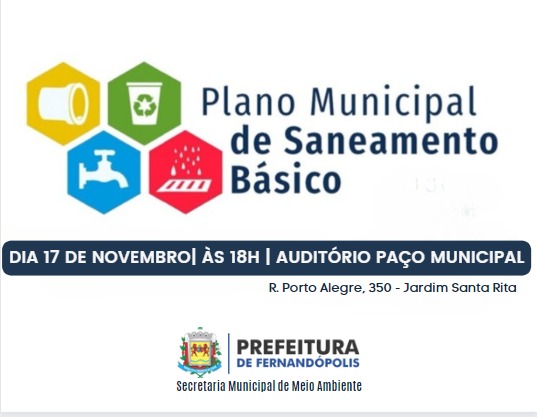 Plano de Saneamento Básico de Fernandópolis será debatido nesta quinta
