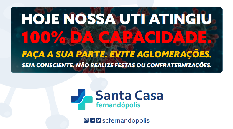 UTI para coronavírus da Santa Casa de Fernandópolis está 100% ocupada