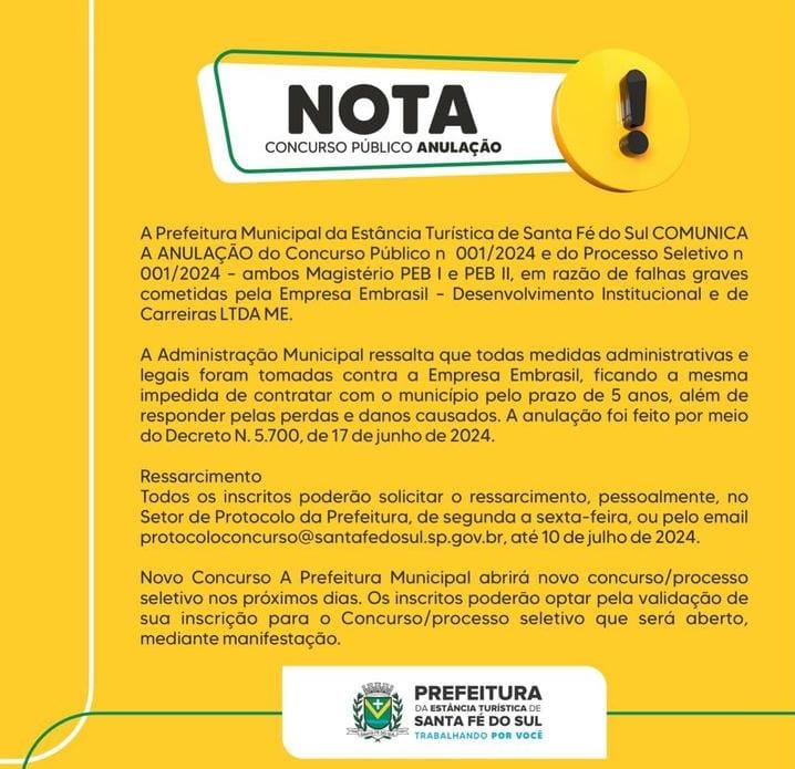 Prefeitura anula concurso e processo seletivo após denúncias graves