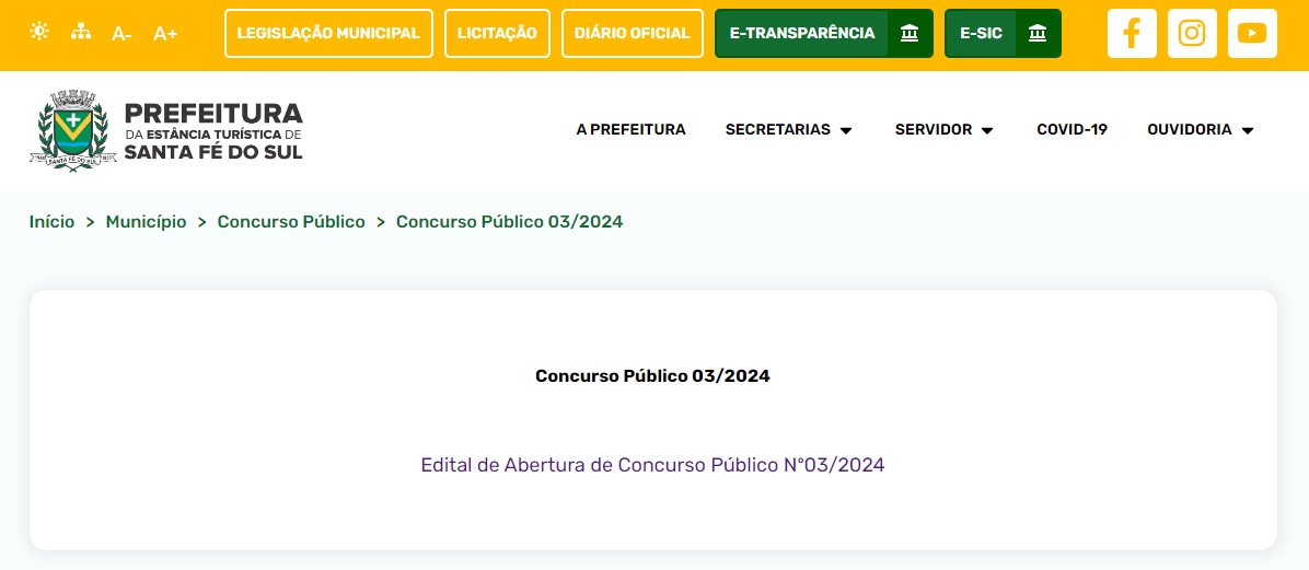 Prefeitura de Santa Fé do Sul divulga novo edital de Processo Seletivo