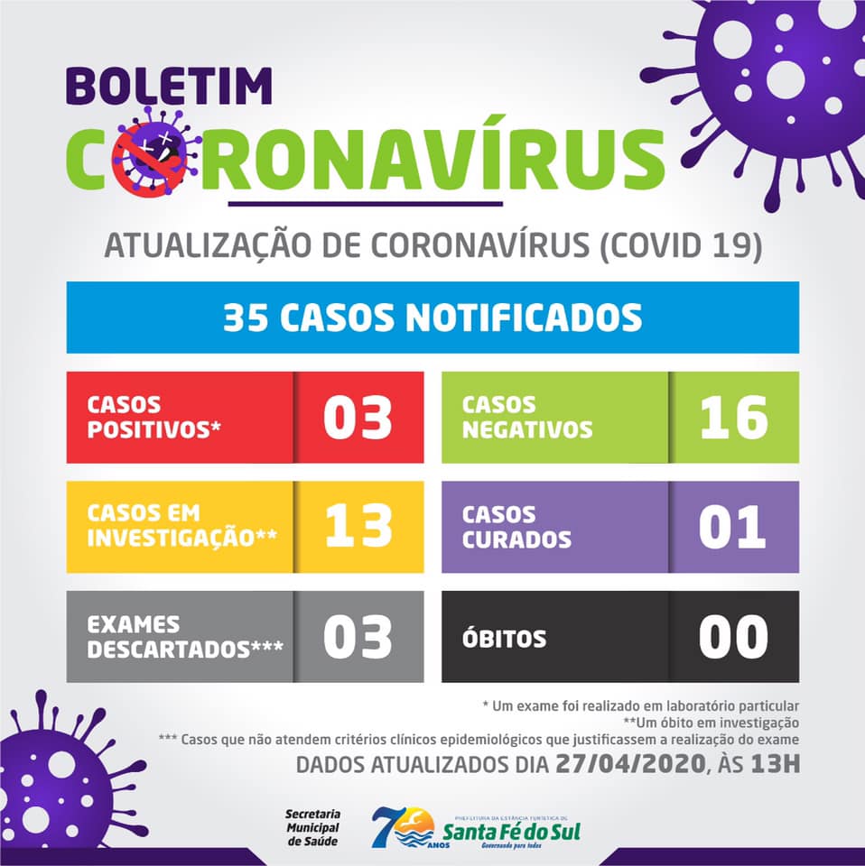 Santa Fé do Sul confirma terceiro caso positivo da Covid-19