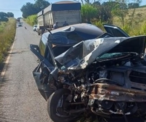 Carreta para na pista e provoca acidente em rodovia vicinal