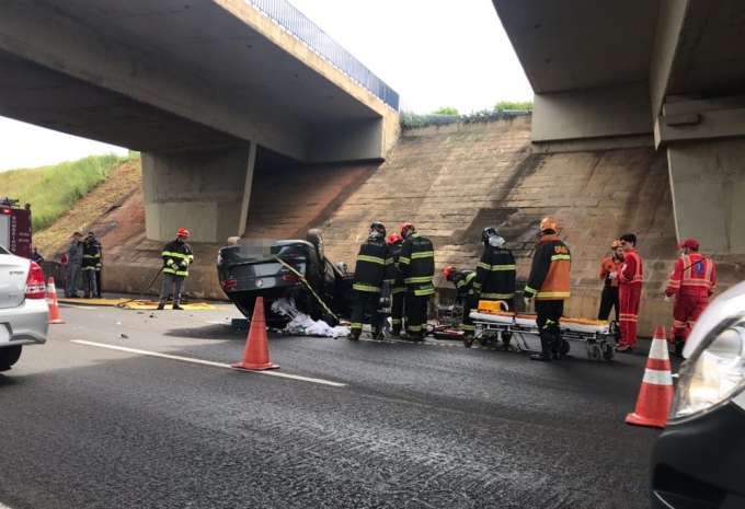 Mulher morre e homem fica ferido após carro cair de viaduto