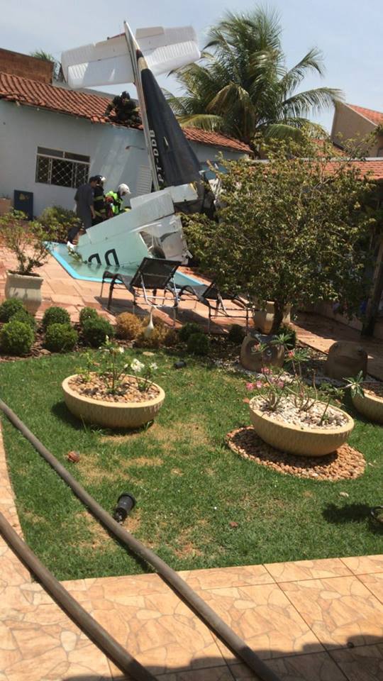 Avião de pequeno porte cai em quintal de residência