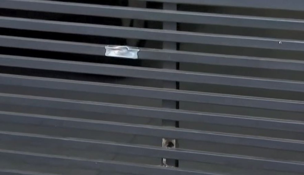 Quatro marcas de tiro foram identificadas no portão da residência